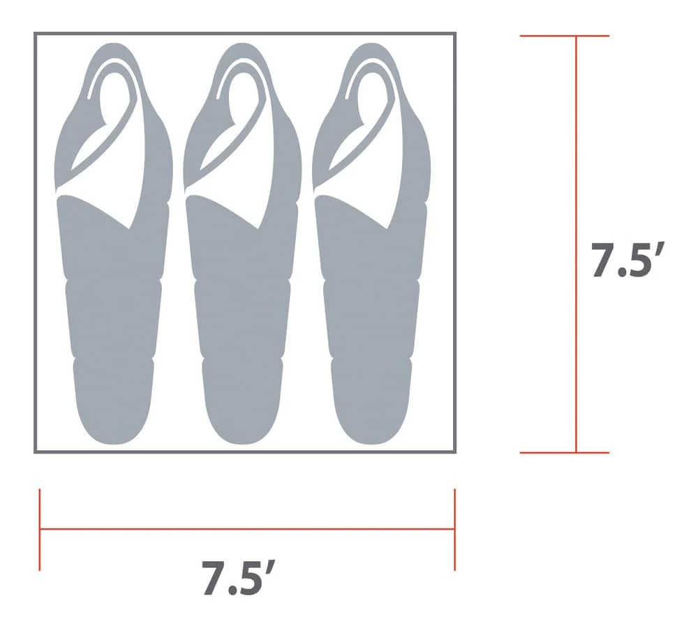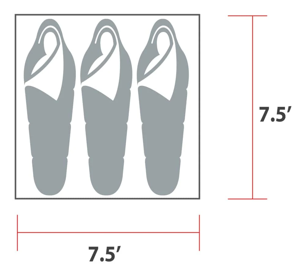 - Tent Dimensions: 7-1/2′ x 7-1/2′ x 4’8″ (2.3 x 2.3 x 1.4 m)