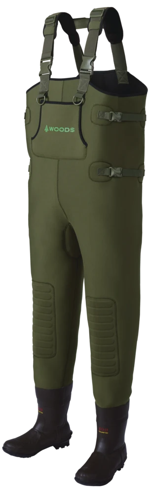 - Woods Big Man Neoprene Chest Wader features a flexible, insulated 3.5mm Neoprene structure