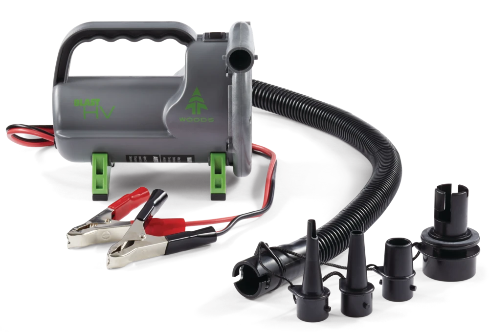- Woods™ Blast HV Marine Air Pump is a high volume/high pressure air pump that is ideal for outdoor use with extra large inflatables such as towables, reinforced vinyl boats, trampolines, etc