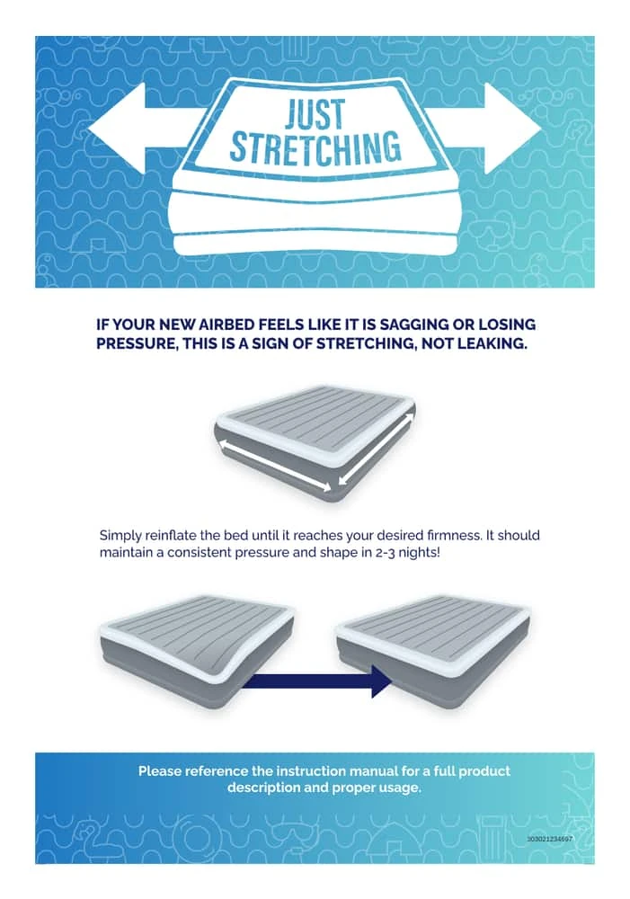 - NOTE: It is normal that air beds will stretch and decrease in air pressure after the first several uses. Your air bed is not leaking, simply add air to your desired firmness and the air pressure will stabilize over several uses
