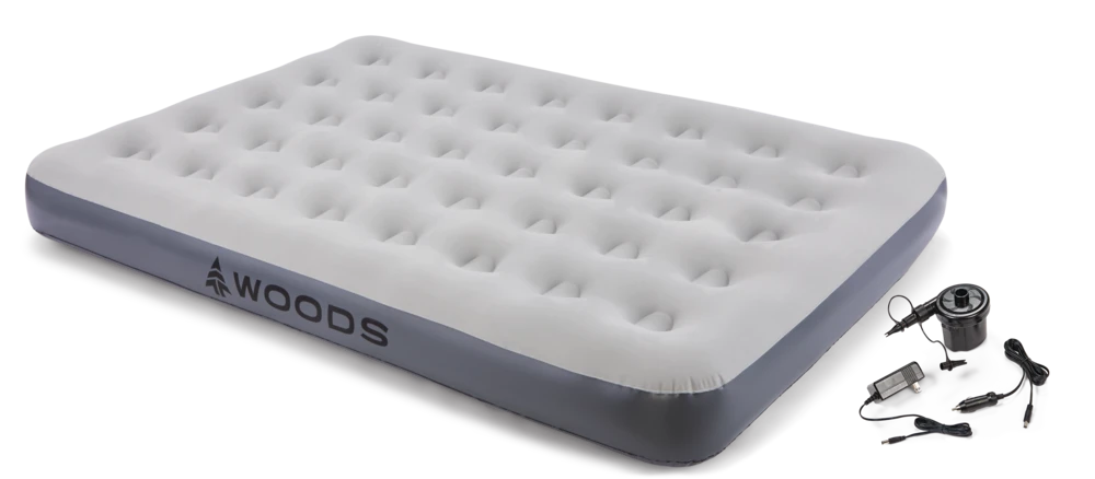 - Woods™ Queen Air Mattress features a 2-in-1 Pump that allows inflation with a standard AC outlet or car charger