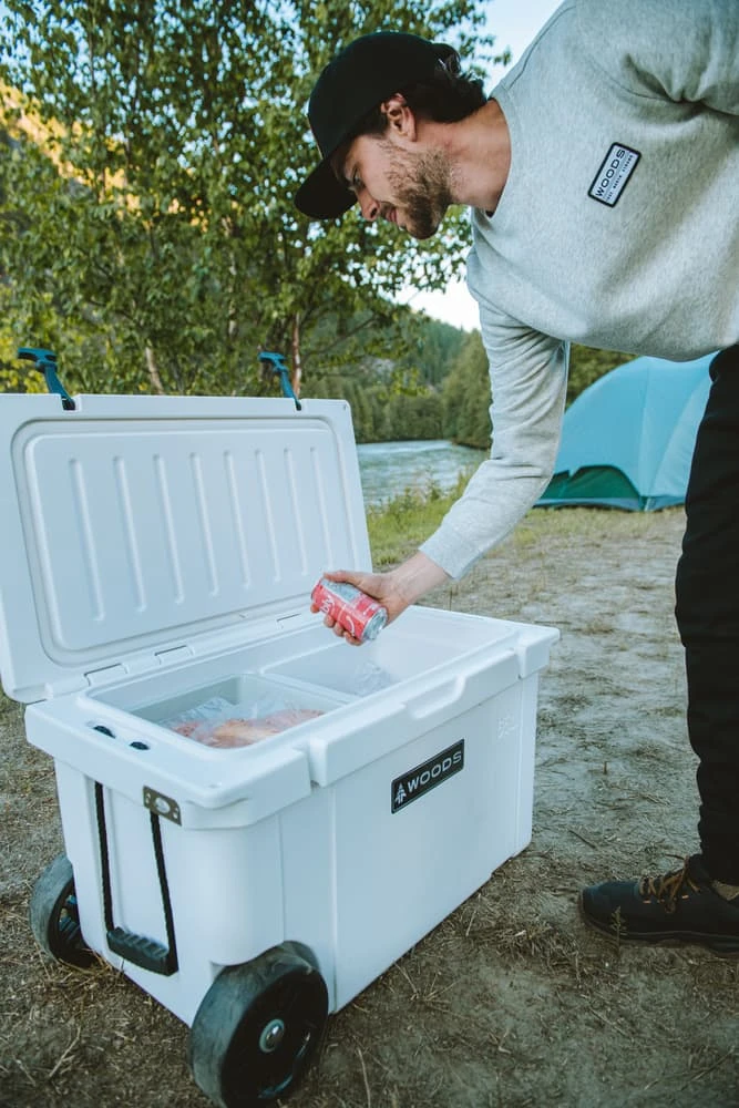 - Woods™ Roto Cooler with Wheels features a lockable lid with padlock ports