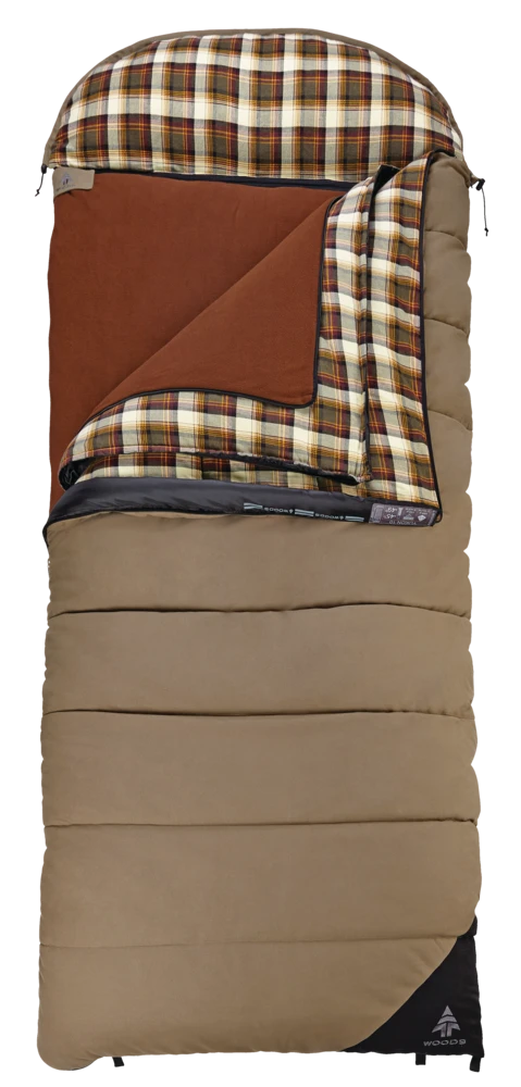 Woods Yukon 10 Insulated Cotton Canvas 5-in-1 Cold Weather Sleeping Bag W/ Flannel Lining & Duffel Bag, -45°C